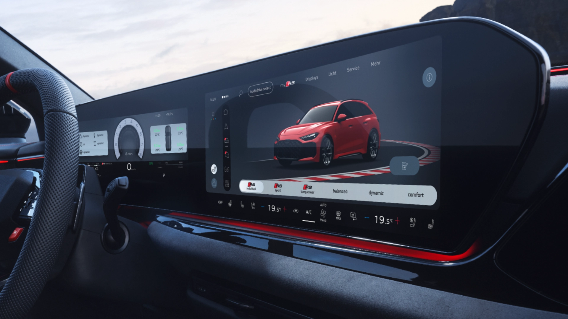 Select one of the three RS driving modes to feel the power of the RS 5 Avant. Or, for everyday journeys, opt for one of the basic modes, ranging from Dynamic to Comfort.