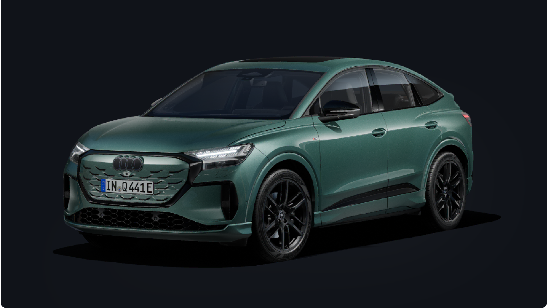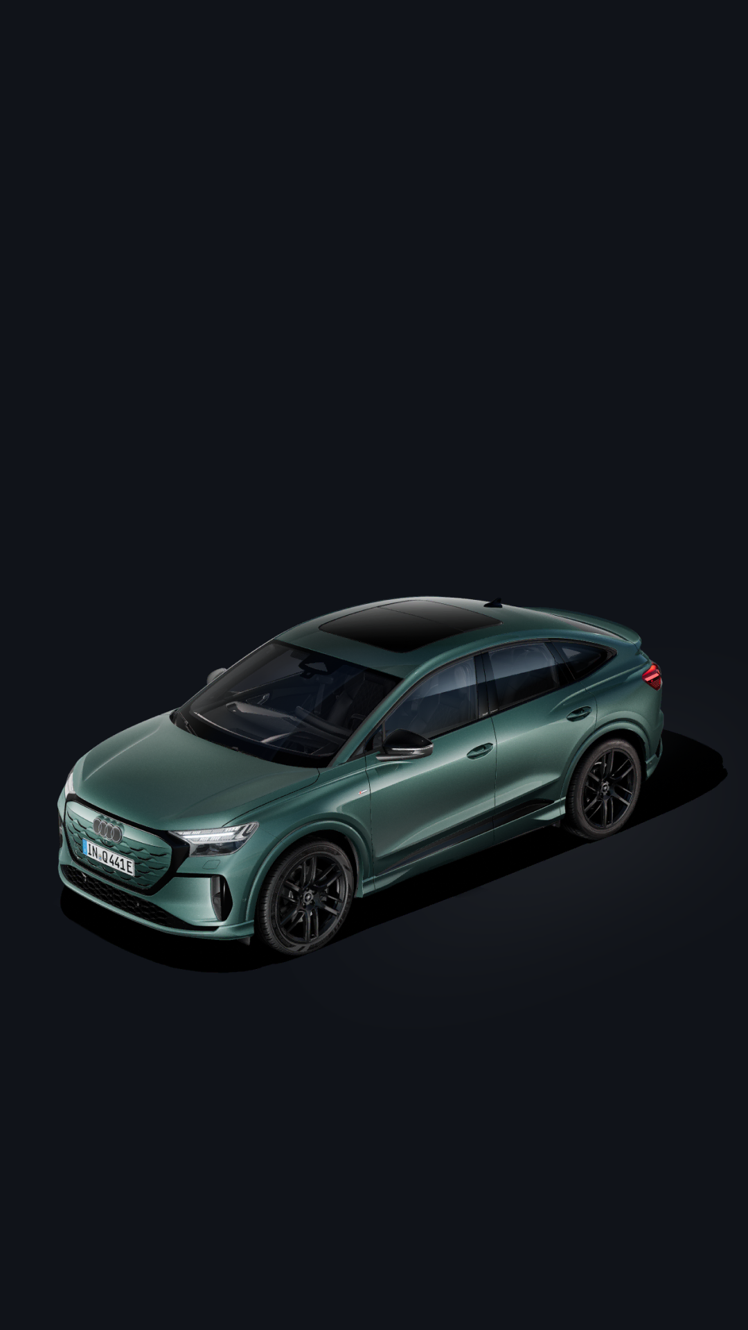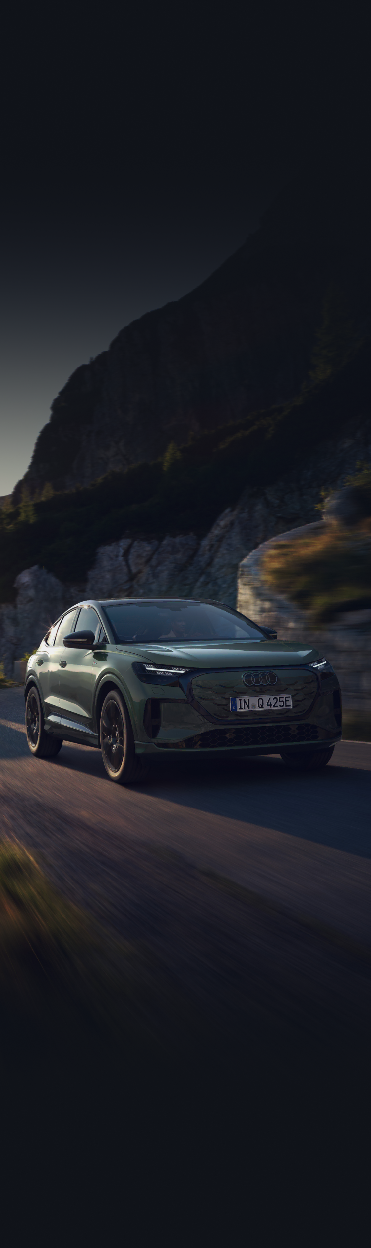 Unmistakably fresh, unmistakably Audi. The sloping roof of the new Q4 Sportback e-tron adds sportiness, while the front features the new 2D-look dark grey Audi rings.